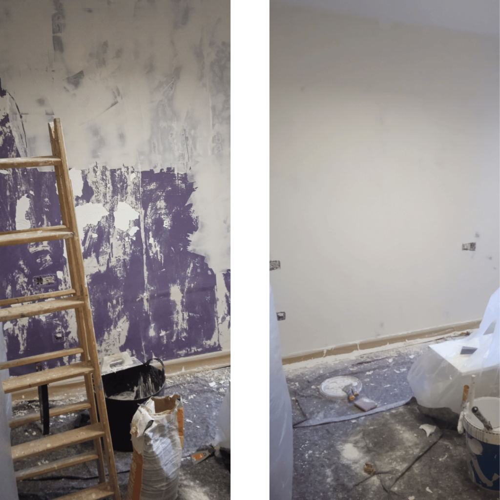 Antes de pintar nos aseguramos de que la pared quede perfectamente lisa, o bien quitamos el gotelé con pasta de alisar y si tiene desperfectos nos preocupamos de que quede una terminación perfecta gracias a nuestra experiencia profesional.