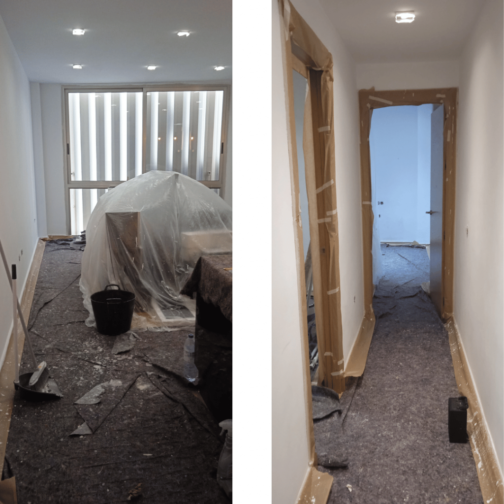 Tapamos suelos, marcos de puertas, llaves de la luz, focos del techo y lo que sea necesario.